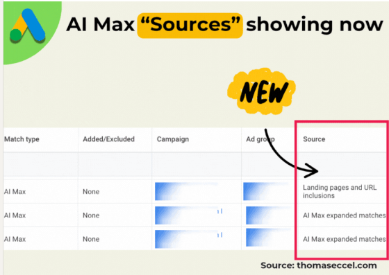 חדש בדוח שאילתות מונחי החיפוש של קמפייני AI MAX של גוגל אדס: עמודת 'מקורות' (Sources)