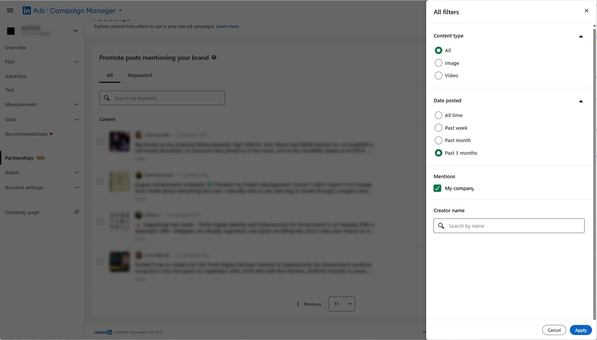 חדש בלינקדאין אדס: טאב partnerships יראה לכם מי כתב על החברה שלכם בלינקדאין, ויאפשר לכם לבקש ממנו אישור להצגת הפוסט בו כתב עליכם – כמודעה מממונת.