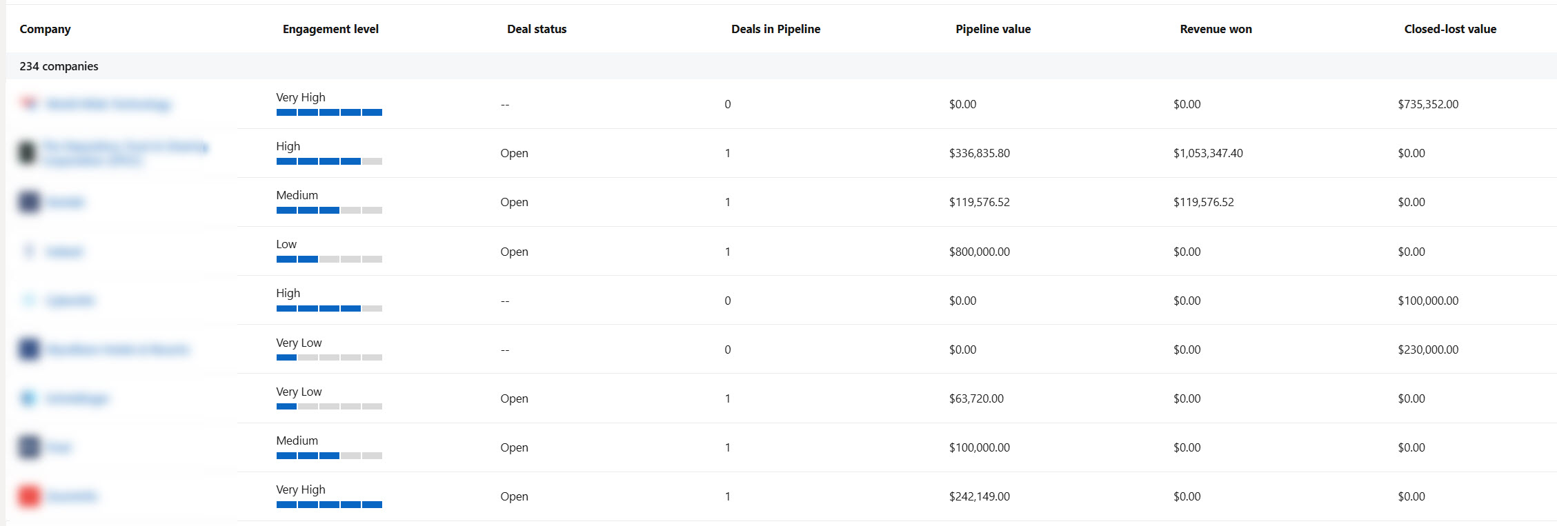 וככה נראה דוח החברות אחרי שבוחרים להציגו עם עמודת REVENUE – שימו לב שהוא מציג את נתוני השנה האחרונה מסיילספורס, אולם רק עבור החברות להן הוצגו מודעות השנה בחשבון הפרסום: