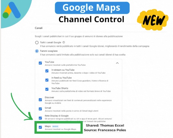 גוגל מוסיפה את גוגל מפות לבקרות הערוצים של קמפייני דימנד ג'ן