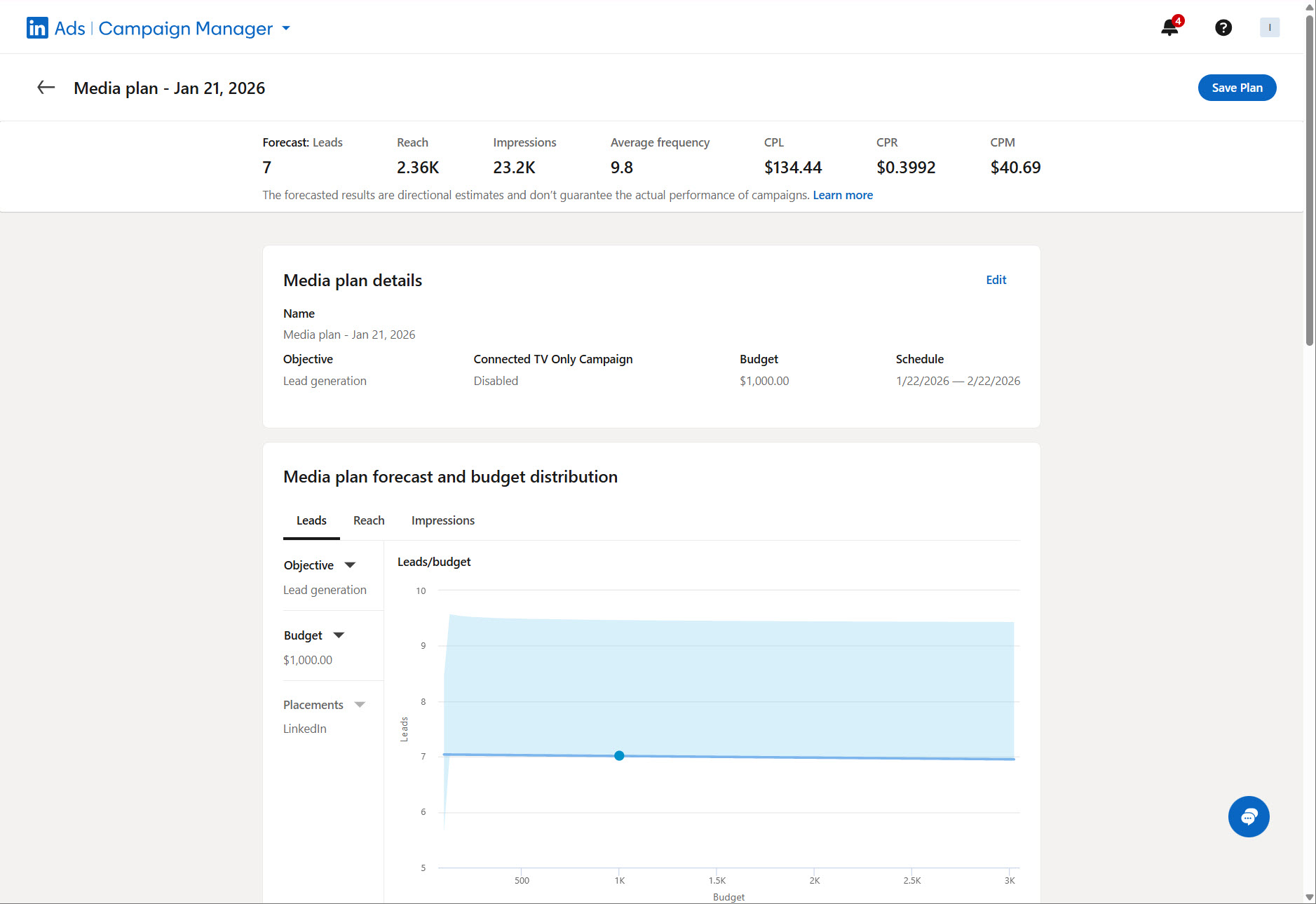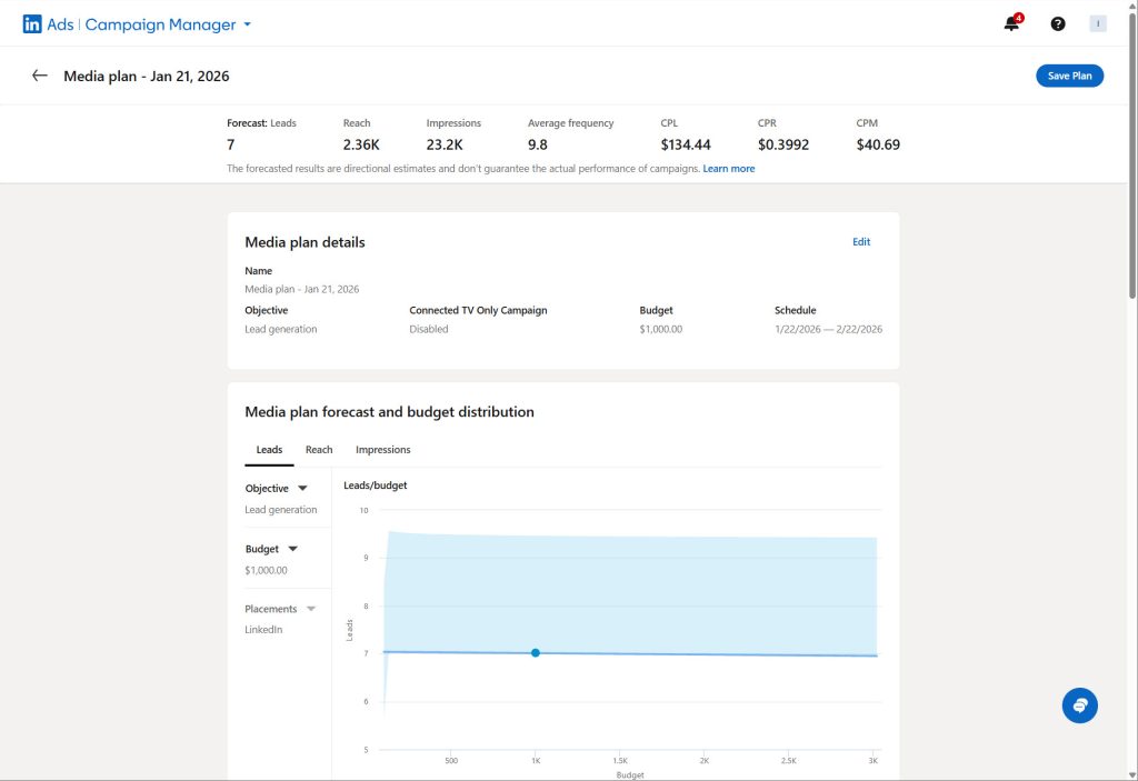 הכלי מאפשר לכם לחזות את החשיפה (Reach), מספר החשיפות (Impressions) והתדירות (Frequency) עוד לפני בניית הקמפיינים, דבר המועיל לתכנון מוקדם או לתיאום ציפיות מול בעלי עניין פנימיים.