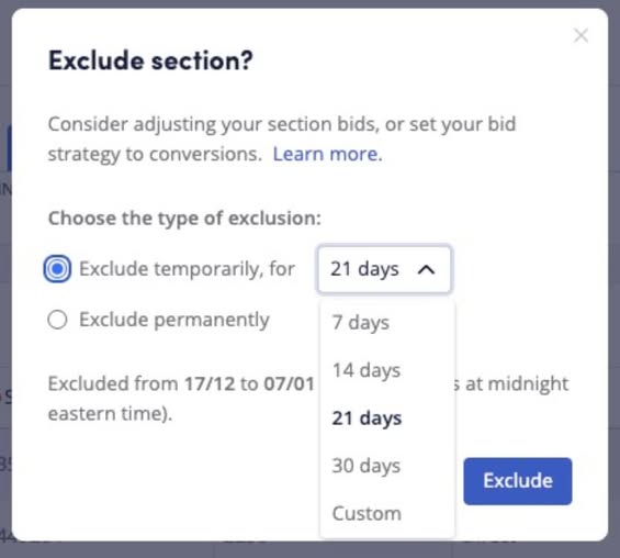 המאפשר לכם להחריג באופן זמני פאבלישר או נושא / section שחוו קפיצה דרמטית בתנועה העלולה לפגוע בביצועים. הופעת המודעות במפרסם או בנושא זה תושהה כל עוד העומס החריג נמשך, ותחודש באופן אוטומטי ברגע שהתנועה ויחסי ההמרה יתייצבו עבור אותו נושא / מפרסם.